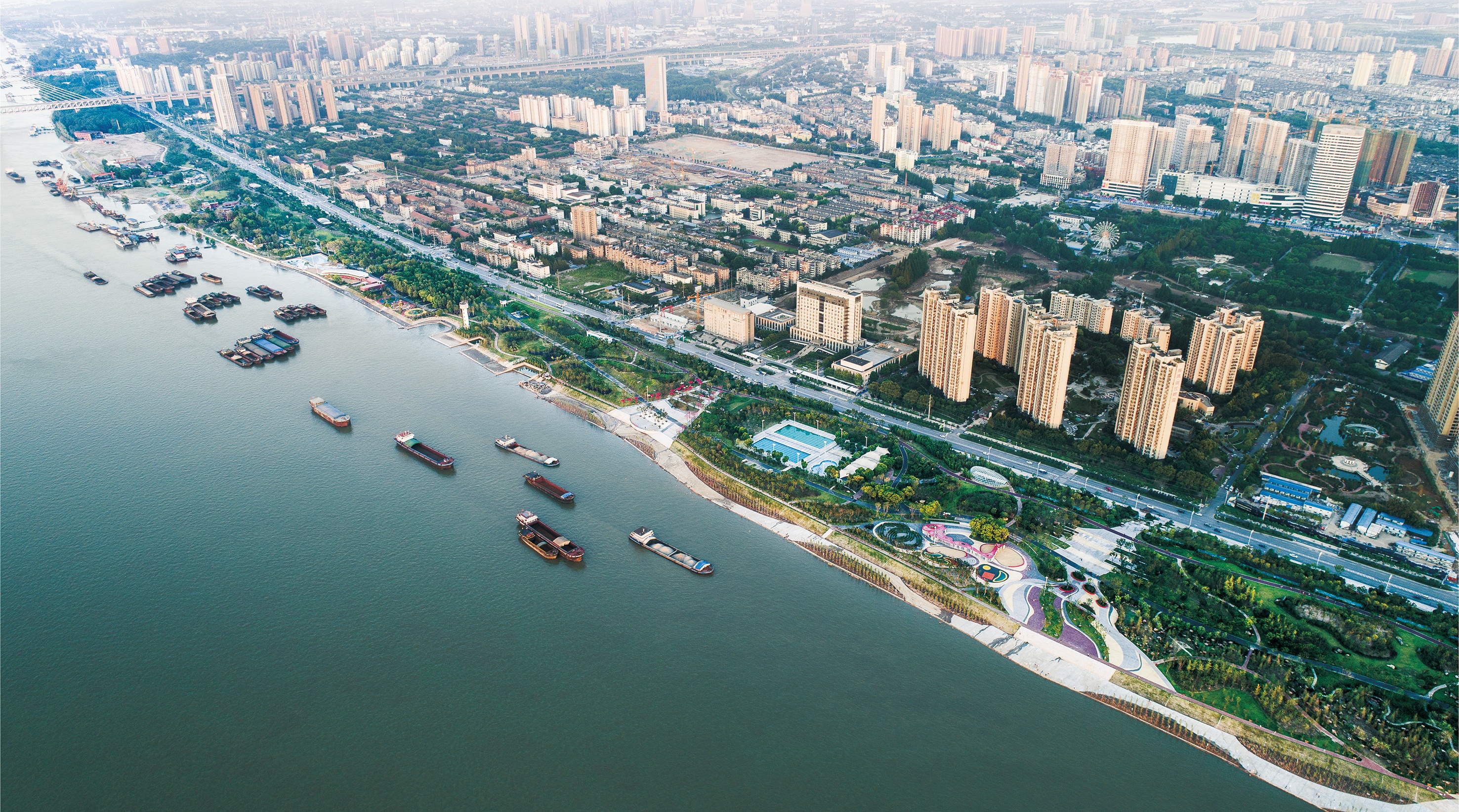由中國一冶承建的武青堤工程是全國首批海綿城市試點項目之一,是湖北省首個“海綿”江灘和綠化比例最高的江灘,全長7.5公里,總面積135.48萬平方米。中國一冶研發應用“人水和諧多功能城市生態堤岸建造關鍵技術”,首次在長江一級干堤采用“似堤非堤”的微地形手法,打造“城市、江灘、堤防三位一體”的生態江灘。